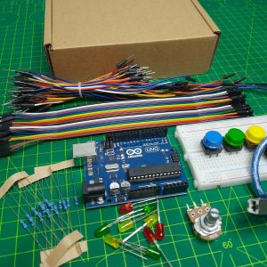 Set ini mengandungi komponen-komponen asas elektronik dan juga papan litar Arduino. Ianya memadai untuk anda mula mengikuti kursus mikropengawal Arduino pada peringkat permulaan. Berikut adalah kandungan set ini: