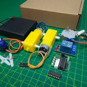 Set ini mengandungi komponen aktuator (tanpa papan litar Arduino Uno) yang diperlukan untuk peringkat seterusnya di dalam kursus Mikropengawal Arduino iaitu topik-topik berkenaan aktuator dan motor. Kandungan item adalah: